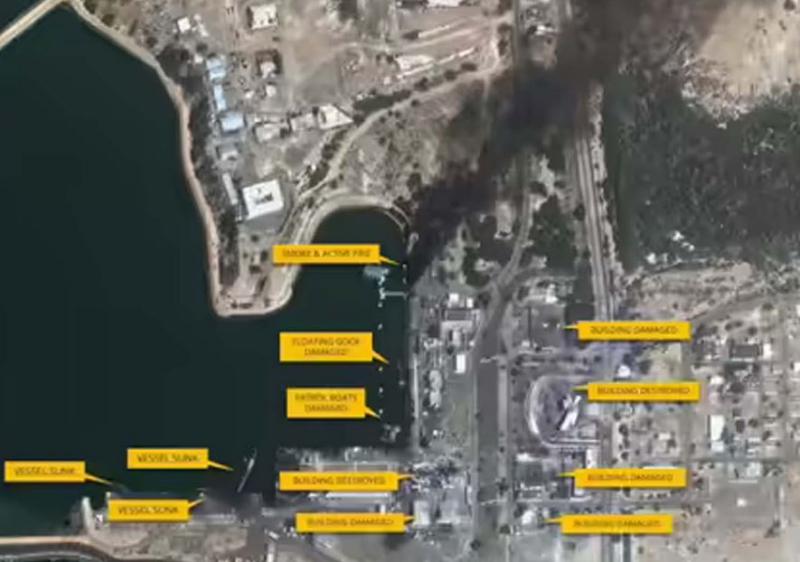 According to media reports, photographs taken at night reveal the situation at the Bandar Abbas Nevus base. The main headquarters of the Iranian Navy and many of its most capable ships and submarines are stationed at this base. In the pictures, dense black smoke can be seen in most parts of the naval base. A cloud of smoke is rising at one place. The effects of the attack can be seen in many parts of the facility. Assessment of photographs shows that the floating dock has been seriously damaged, patrol boats have been damaged, the building has been completely demolished.