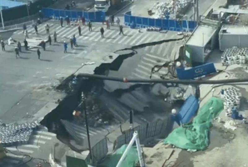 Road caved in China, 20 meter wide crater formed, accident due to pipeline burst